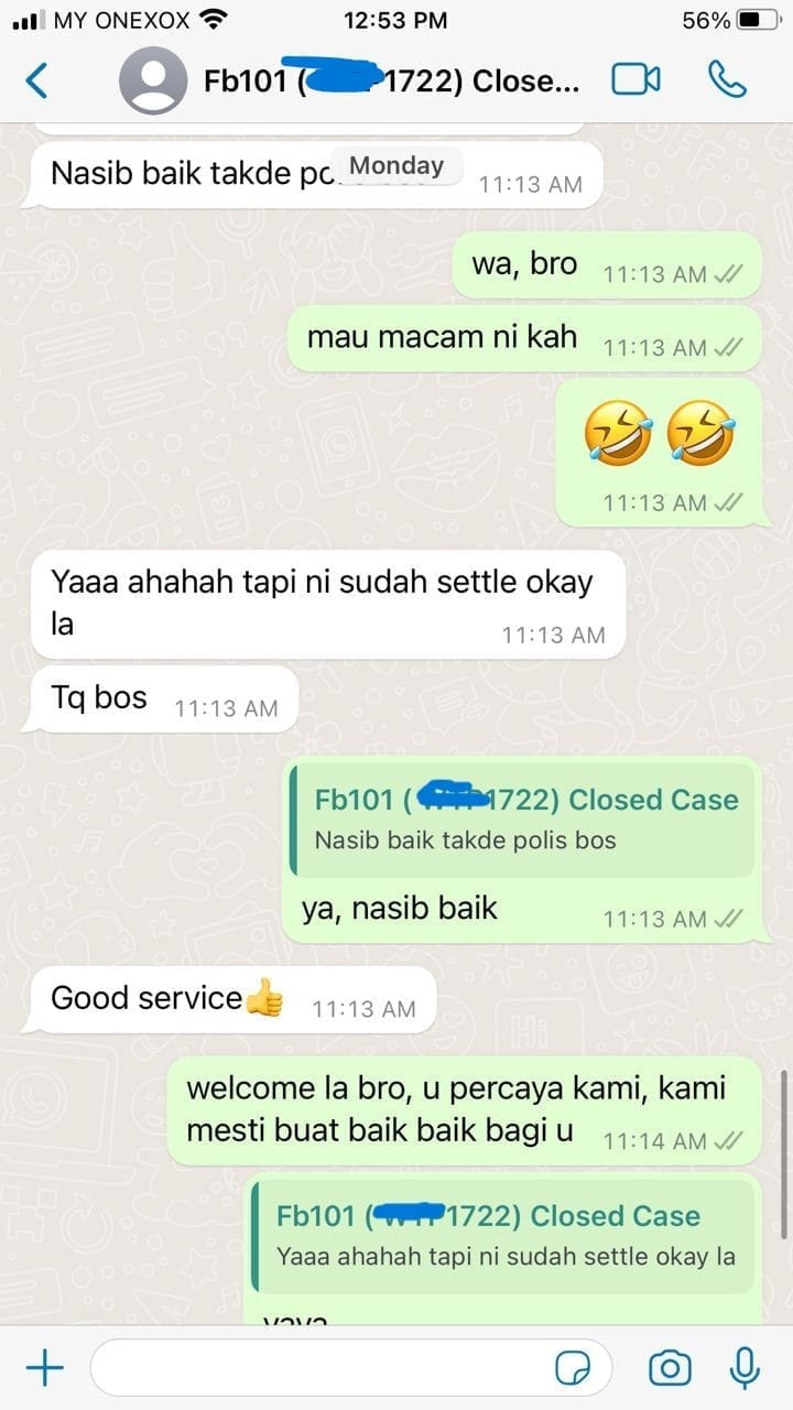 《只有 Service,没有套路 》 以后如果遇到车祸、或者是大镜爆了要 Claim,直接 WhatsApp 我们,哪怕半夜也可以打来!